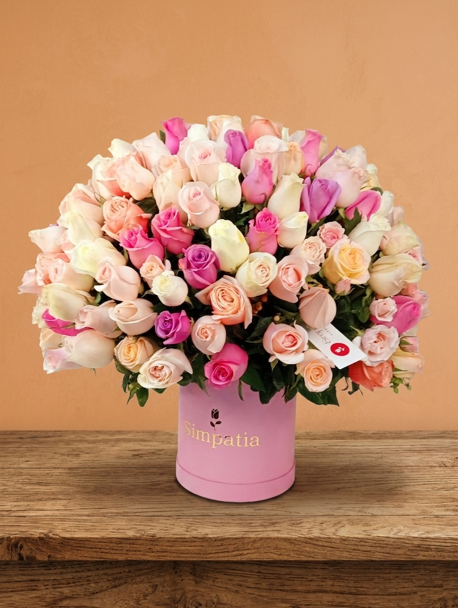 Box de 80 rosas en tonos variados alt. 60 cm