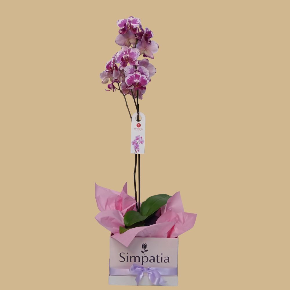 Planta de Orquídea Lila jaspeado, en fina presentación